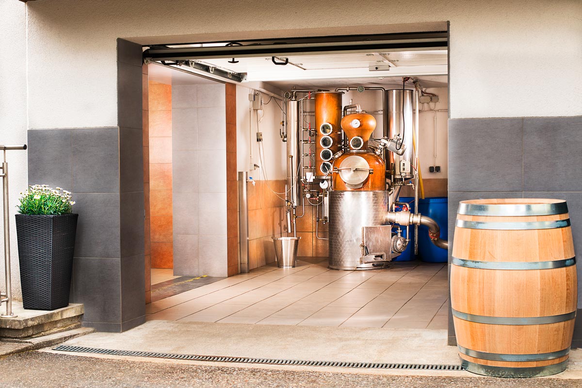 Nach der erfolglosen Suche nach Pachtflächen und dem Besuch eines 2-tägigen Brennkurses wurde 2007 kurzerhand die Garage zur Brennerei umfunktioniert. Wir spezialisierten uns damals erstmal auf hochwertige Edelbrände – die Königsklasse der Brennerei – und jeder verdiente Euro wurde sofort wieder in neues Obst investiert.